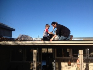 Today, Sexy Neck even asked me to get up on the roof to clean out the gutters. WHAT? You have to do that! So, here goes the girl who does not like heights up onto the roof! Don’t worry I enlisted a five year olds help and Sexy Neck was supervising from the lawn.