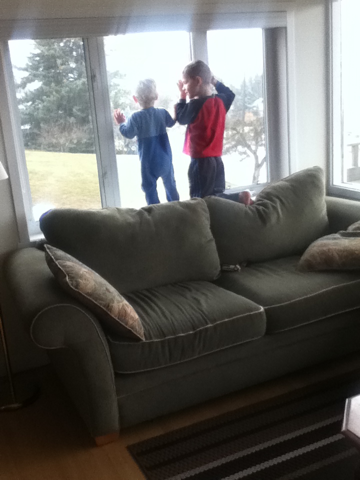 This morning our kindergartener was home sick from school. Our boys had an incredible two hour cushion-fest. It was incredible to see all the creations that they made, including this cave the boys wanted to eat their snack in.