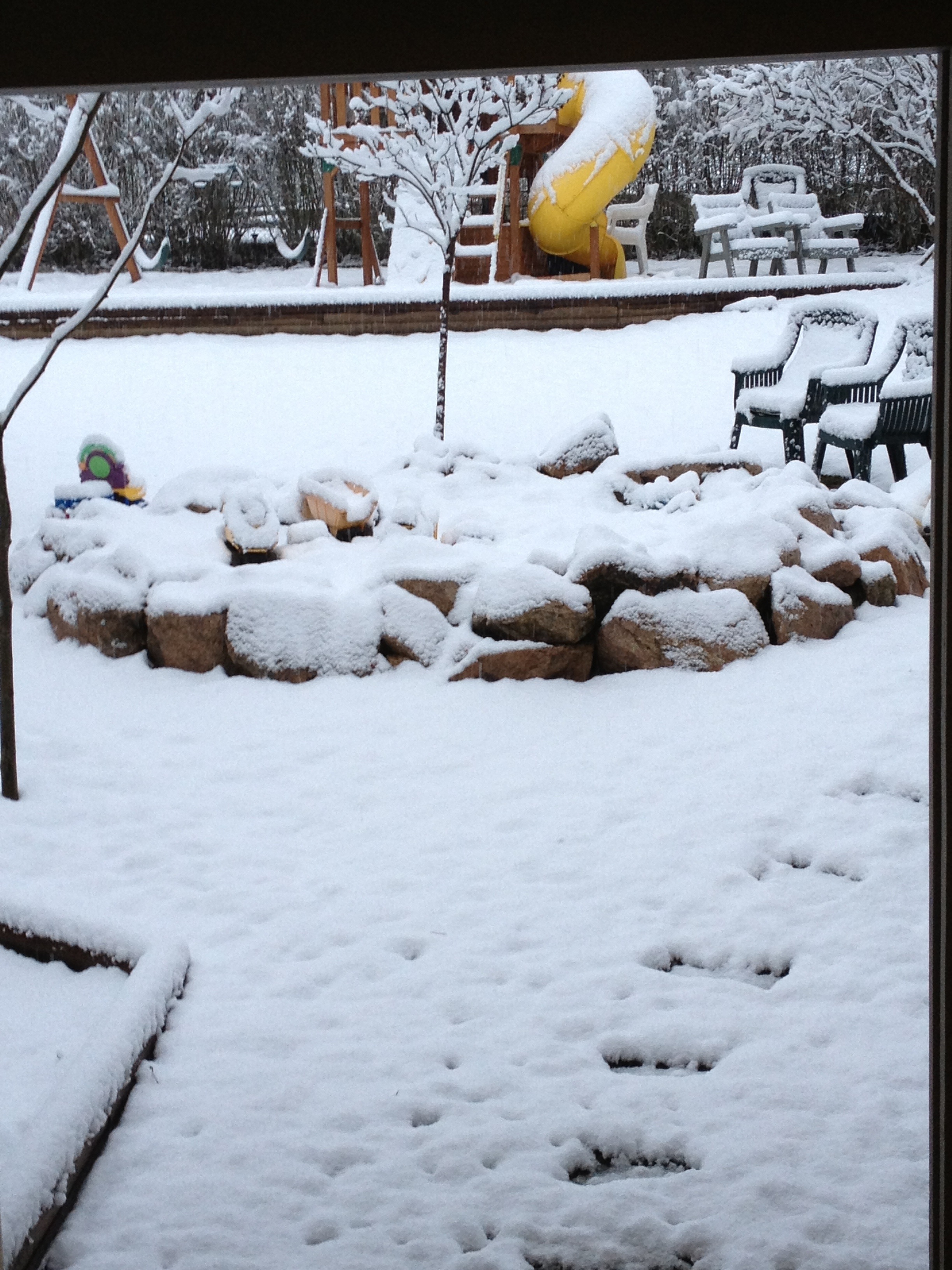 Last night at 6pm, we have friends over to play in the backyard in the sandbox and tree fort(sans mitts, snow pants, boots…).