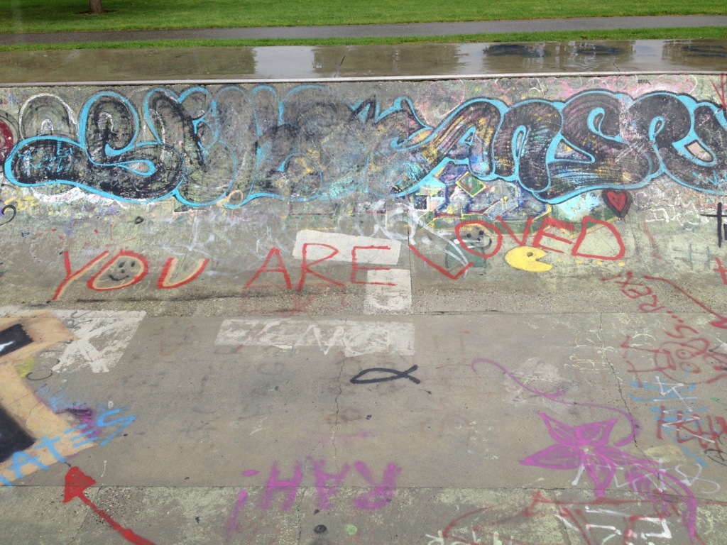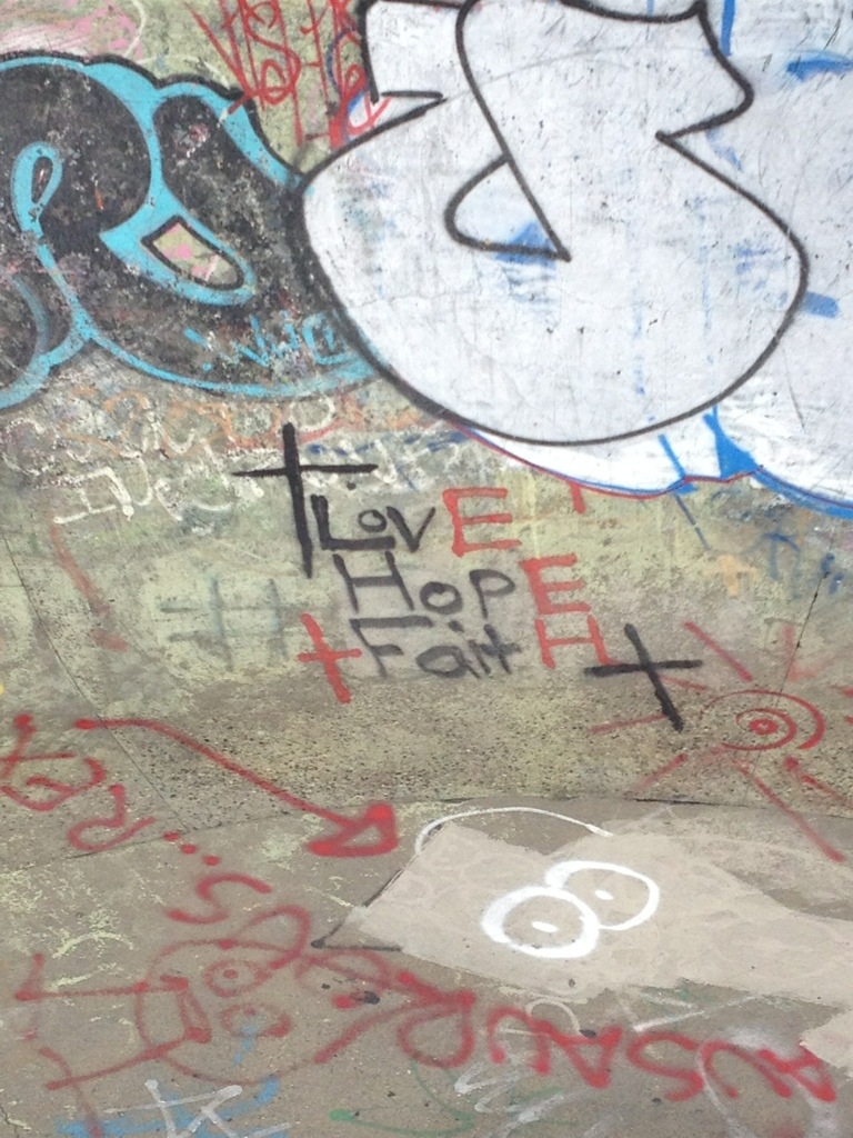 I don’t doubt that these words were put down in the bottom of the skateboard ramp were put there for me on this day. I also don’t doubt that the only way I can walk through these days is because of the prayers of the saints that walk this earth with me – thank you my saints!
