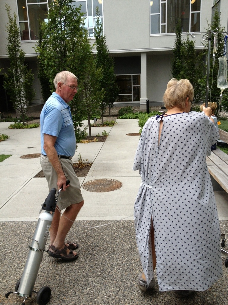 Here are mom and dad heading into the winter garden. This is an outside garden between the new tower and the old part of the hospital.