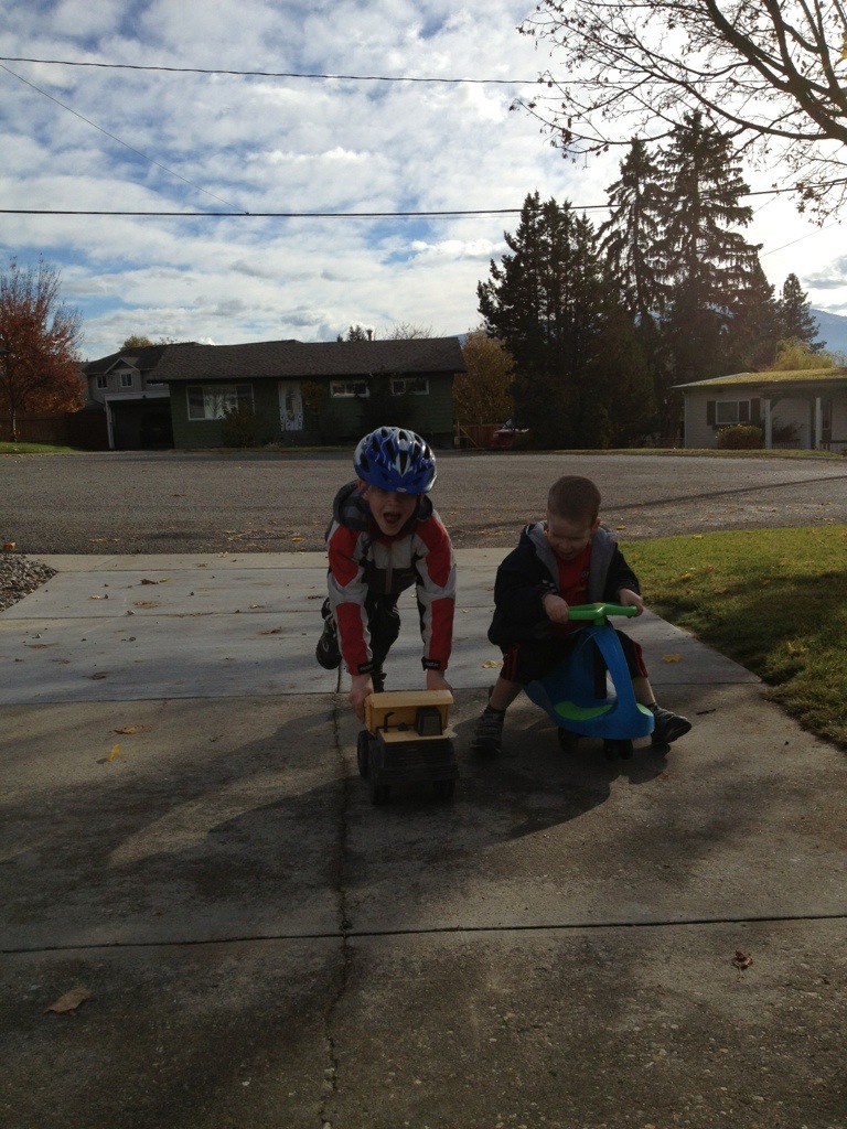 It was a PJ, truck playing, leaf gathering, door jam hanging, hockey equipment wrestling kind of day.