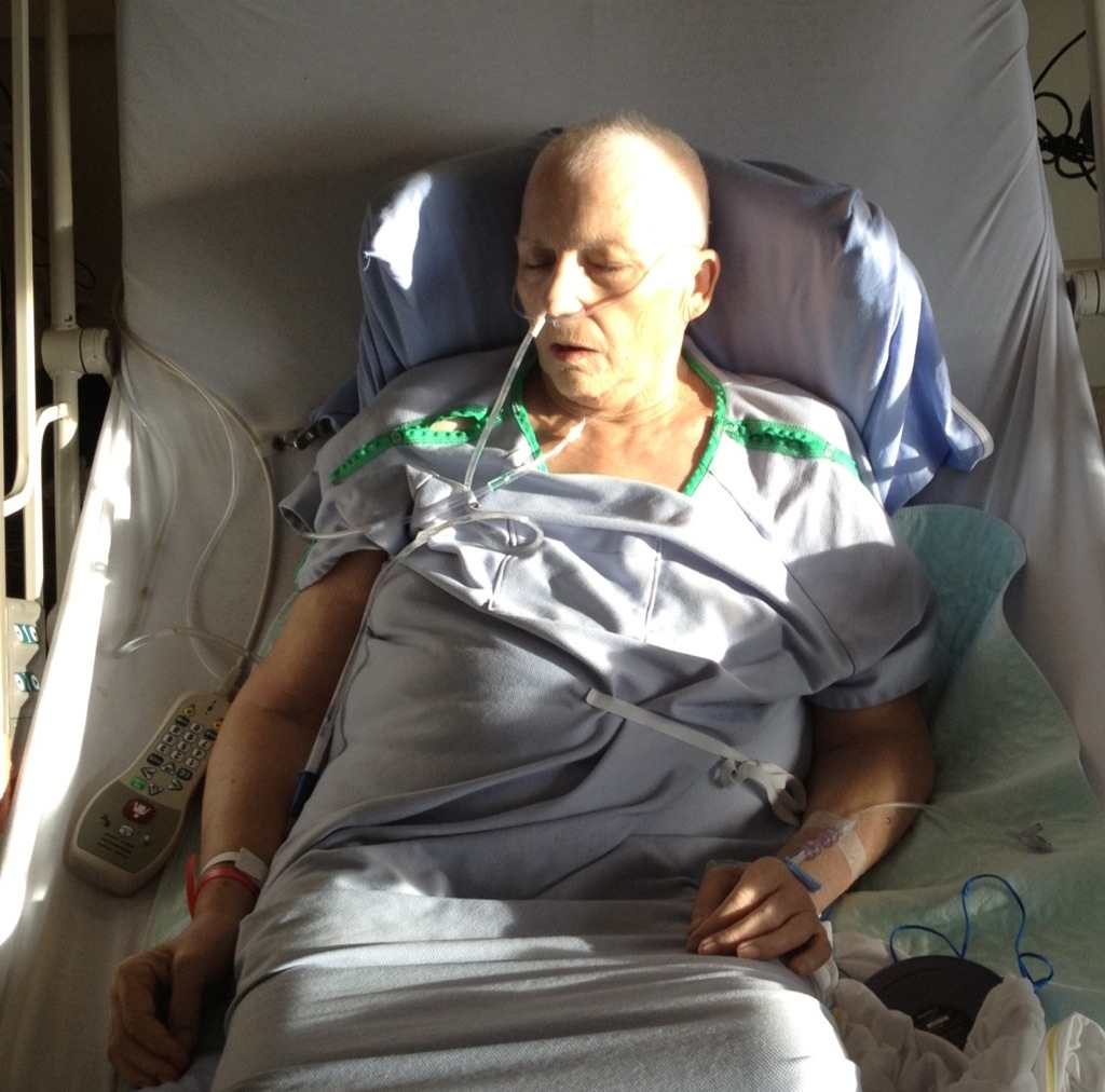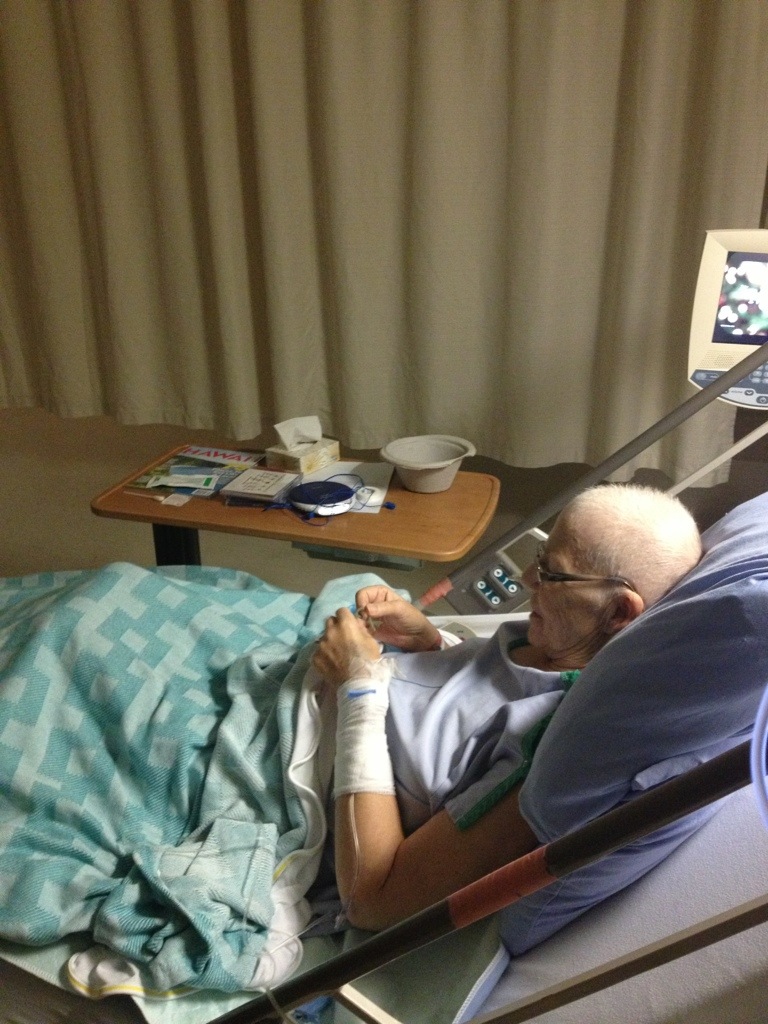 We hear the fan overhead, mom’s IV drip, mom’s deep breathing, the lady coughing next door, the slap of shoes walking down the hall, the click of a door.