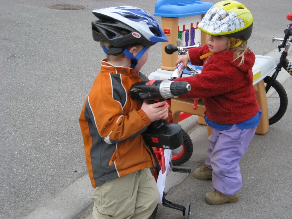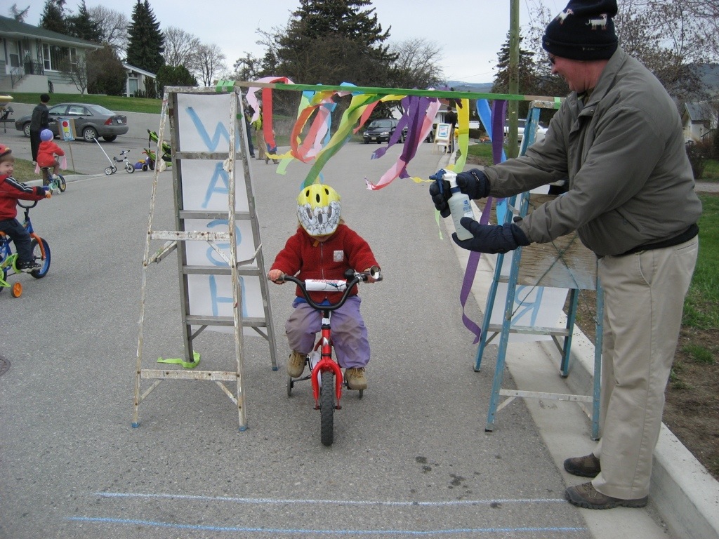 Yesterday I went searching in our photos and finally found the one that epitomizes Gwen to me – Jackson’s 3rd birthday party whose theme was cycling – it was a neat party and you and Gwen were both very involved – attached are a few photos that show Gwen in her cycling jacket, etc. manning (or womanning) the water station and you, Mike, manning another type of water station – good thing it was a hot day!! The kids sure loved it all and it was one of our favourite birthday parties – though they are are all fun!!