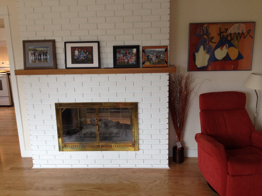 The newly painted double-sided fireplace.