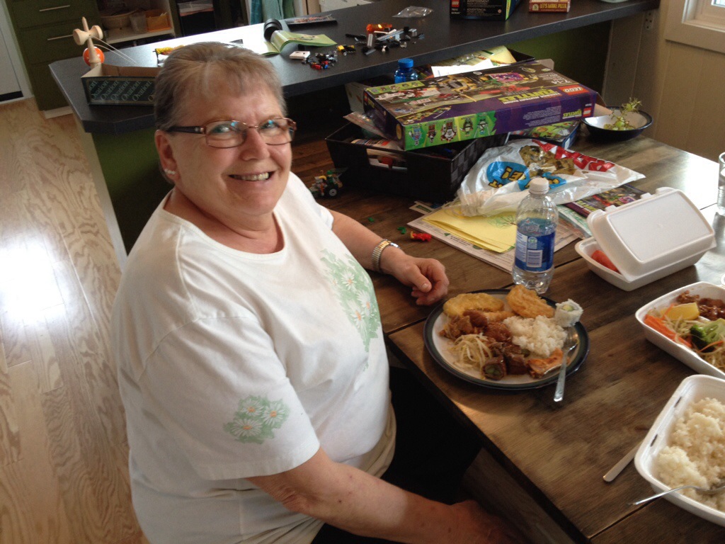 Here is Auntie Gail enjoying her first ever Japanese food dinner.