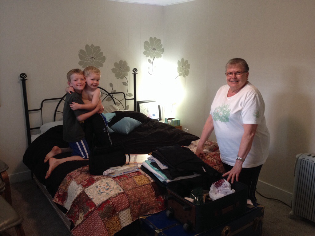 Auntie Gail getting settled in her room. The boys ‘helped’!