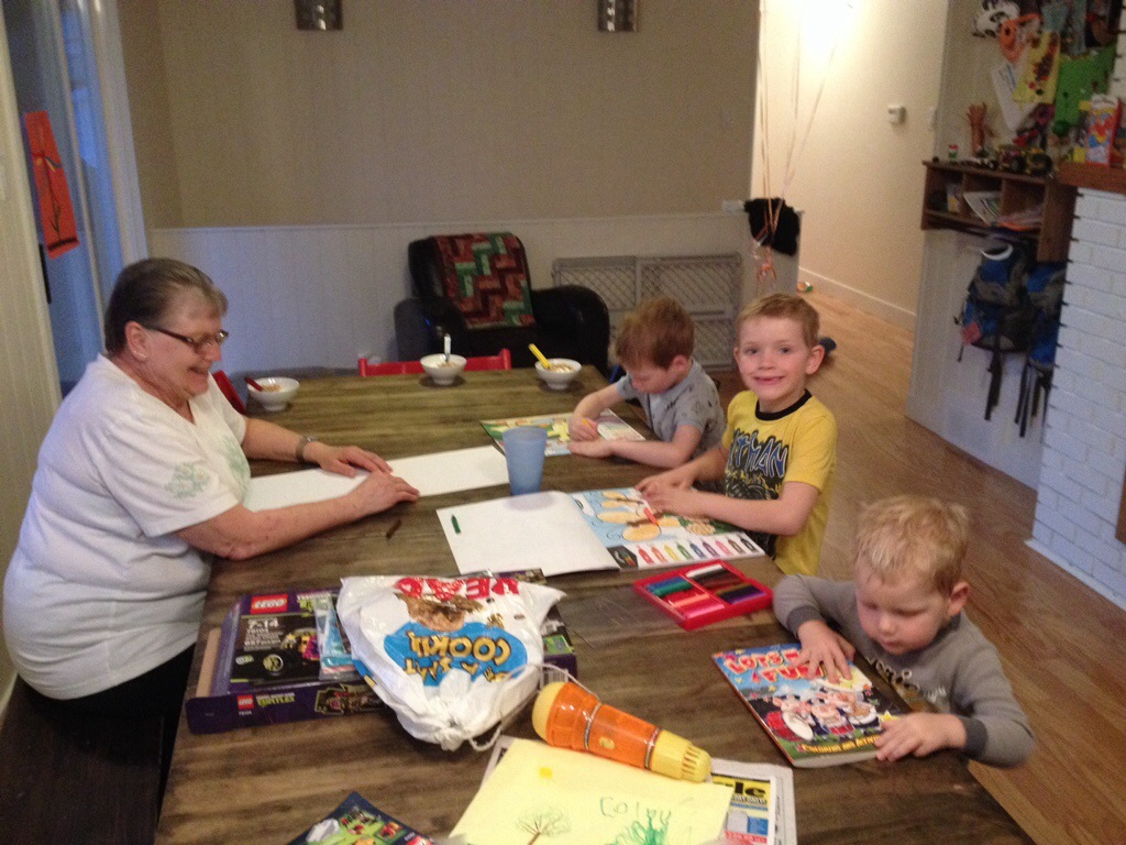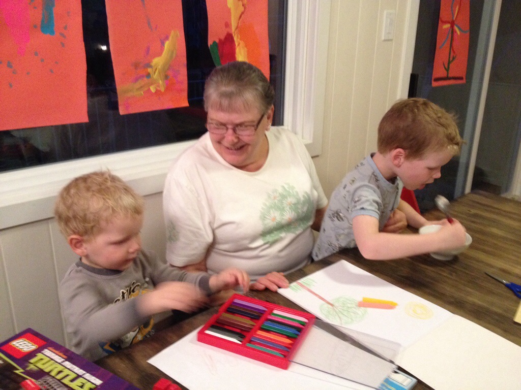 Auntie Gail brought beautiful drawing pencils and paper for the boys. They all spent many hours drawing together.