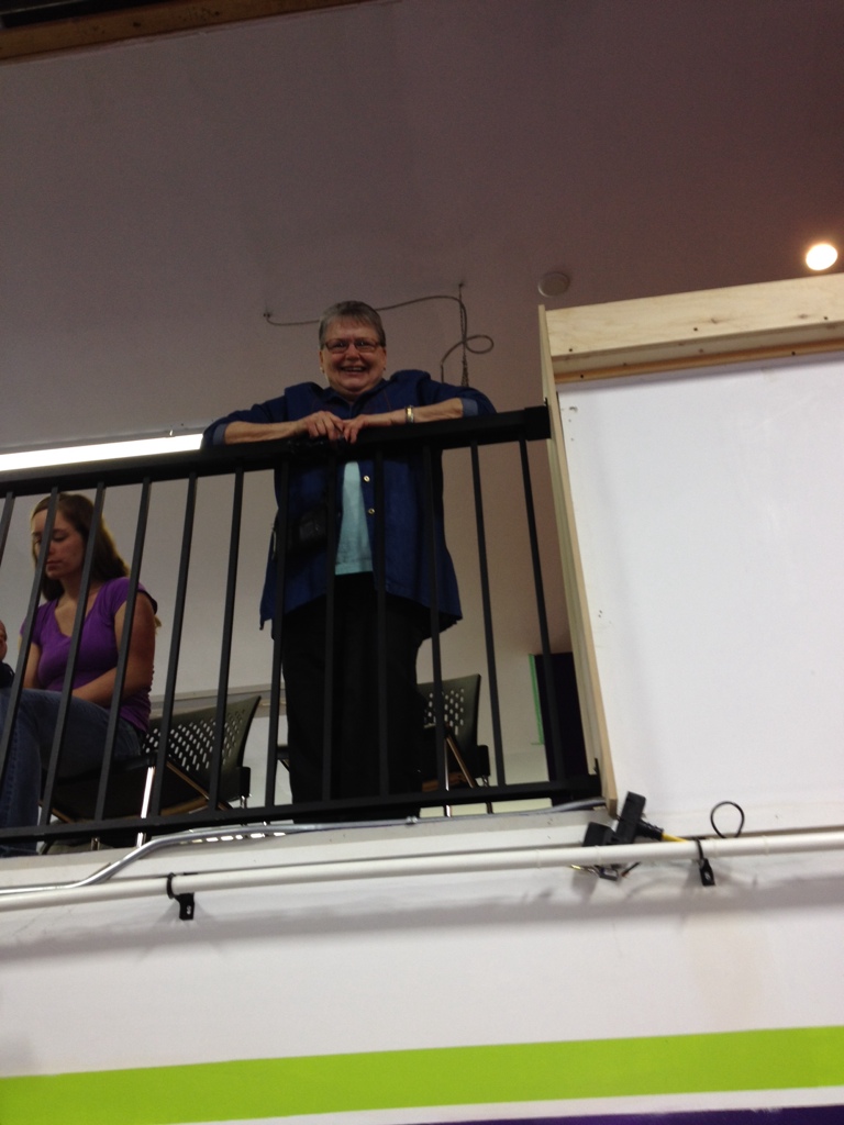 Auntie Gail watching our youngest at gymnastics. OC loved having her to wave up to. She watched with a big smile on her face. What a gift!