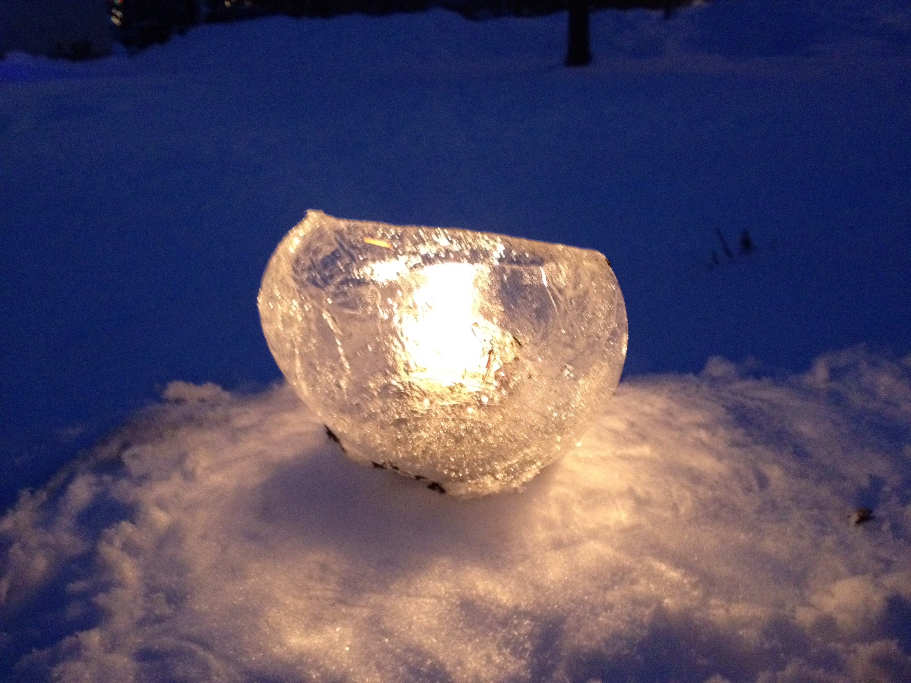 We created three ice candles and placed them in our front yard, which is coincidently (or not) to the East of our home. We didn’t realize this was the East until JC pointed it out.