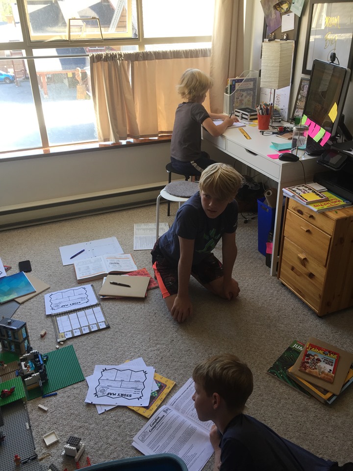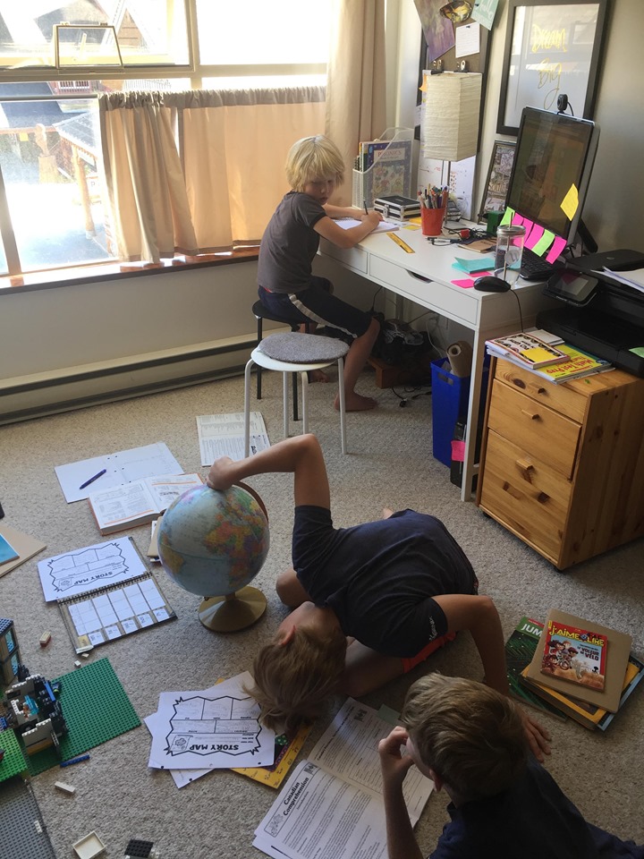 The boys do formal schooling Monday thru Friday from 9:00am to Noon. This formal schooling involves the 3 R’s – reading, writing and math! And I am hitting them hard. Going over basic facts, teaching them grammar and helping them understand the basics of the english language. They are writing in a journal, writing stories and doing research. Our 12 year old is researching Ancient Rome and Tesla. Our 10 year old is immersed in simple/complex machines and robots. Our 8 year old learned everything he could about Bobcats. Did you know they pee in the water so that they don’t leave a scent? Previously, the boys have been in French immersion, so the older boys have been doing their math in french and our youngest continues to write in french. But, I haven’t been stressed about it. If we decide to dive back into french next year, we will do a bootcamp in the summer to help them get back up to speed. This year is all about filling in some educational gaps that I see and having fun learning about what they are interested in.