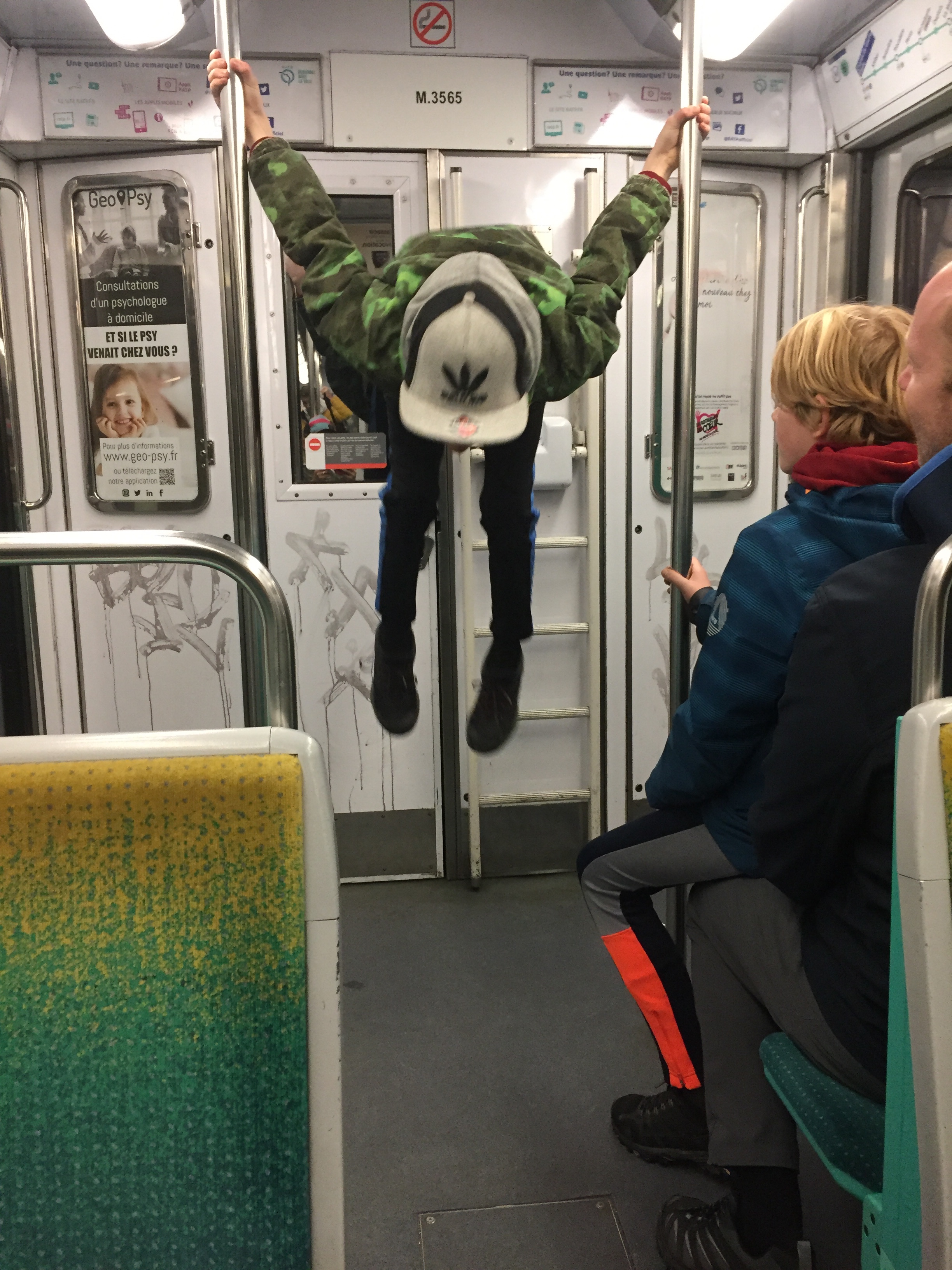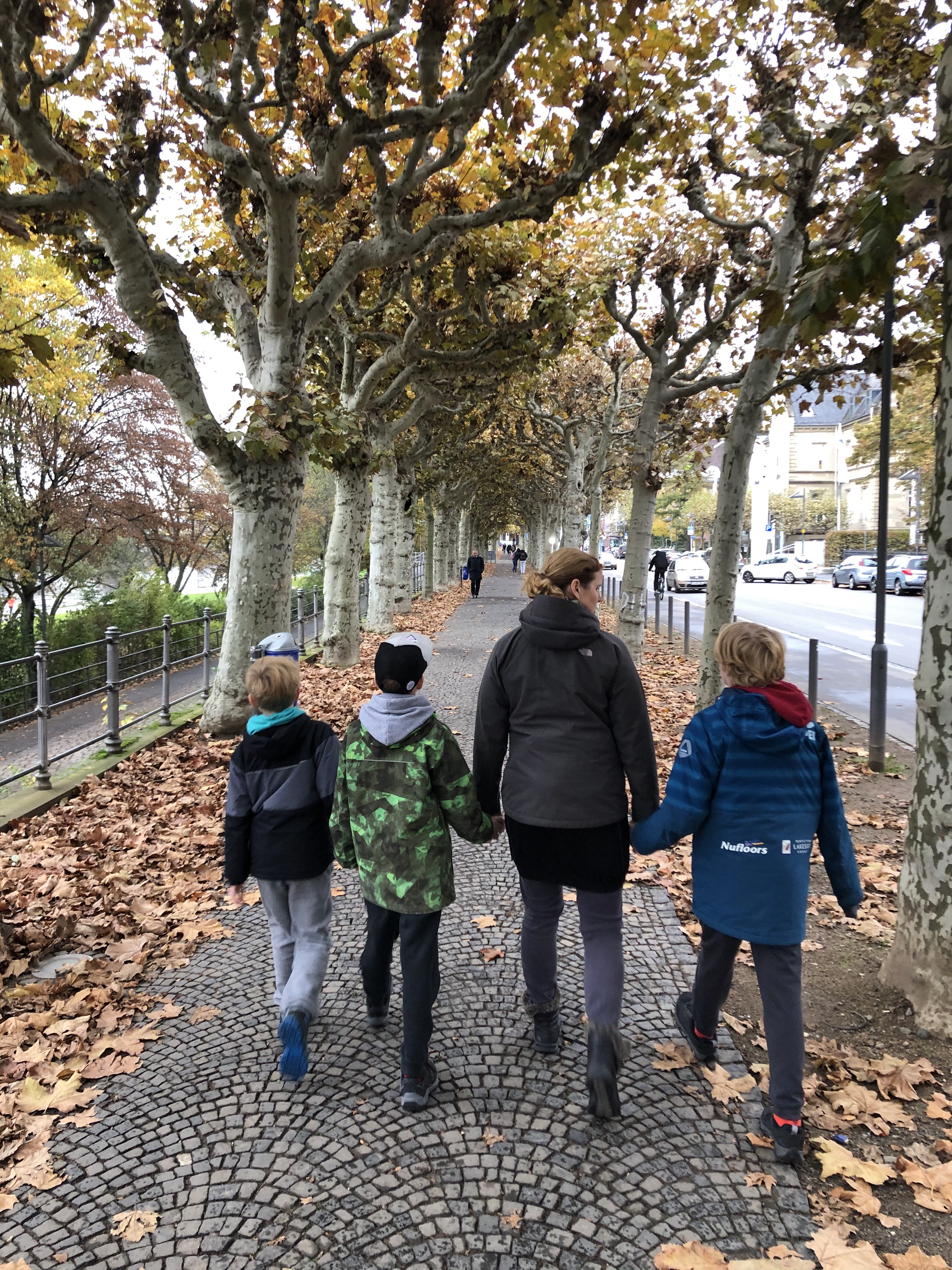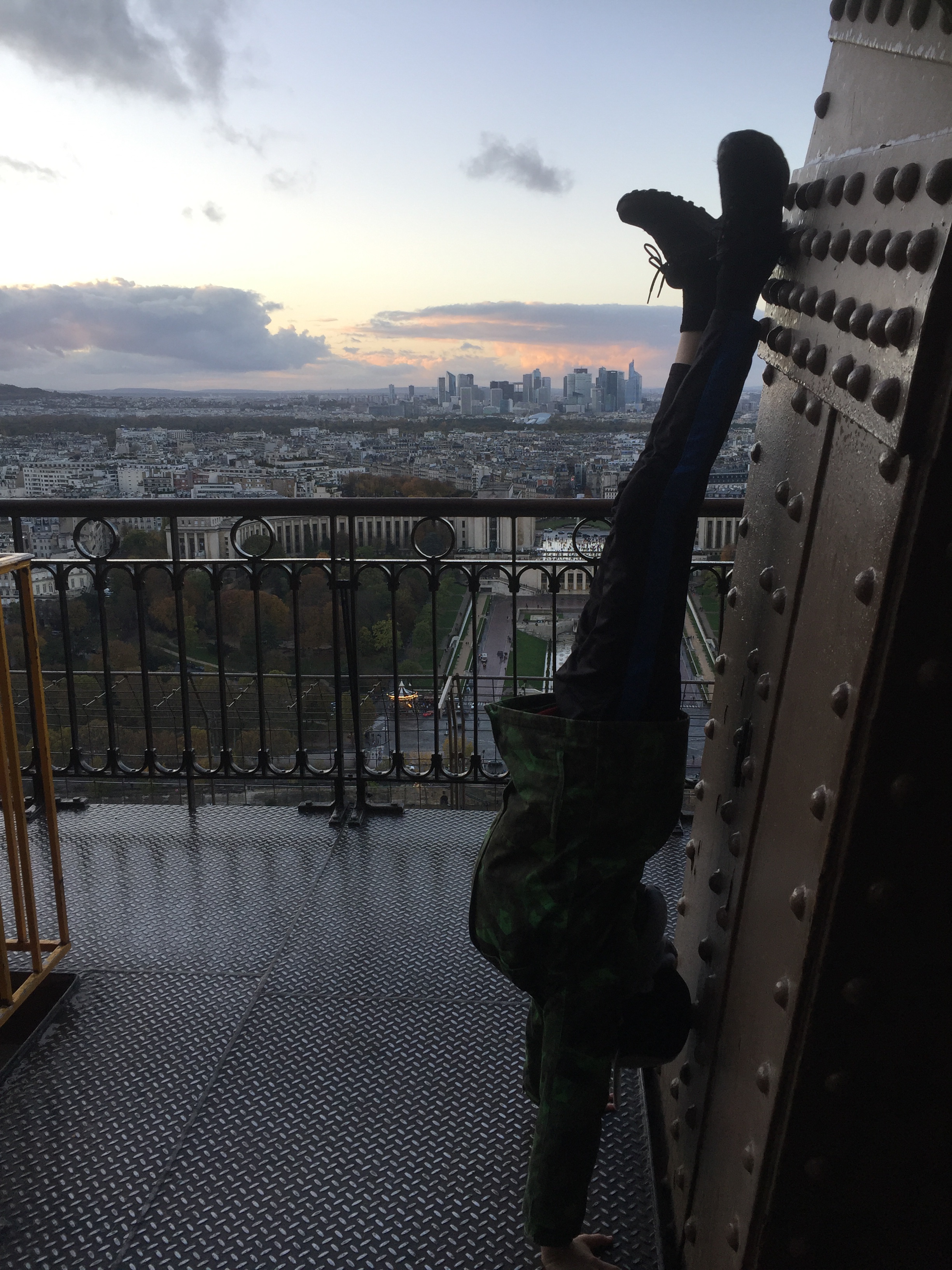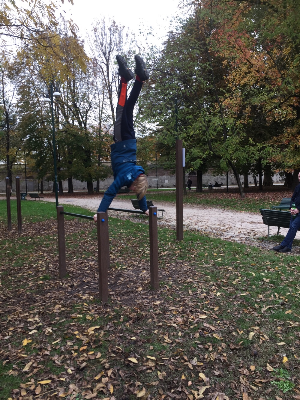 After saying “au revoir” to Daddy who will be working in Berlin and Düsseldorf for the next two days, we decided to try and find the Ferris wheel that we have been watching out our window in the evenings. We found the Ferris wheel plus stairs and concrete barriers to do parkour on, a construction site to watch and eat more Leonida’s chocolate at, a skateboard park, and many poles to “kong”. (To think I didn’t even know what konging was a week ago!)