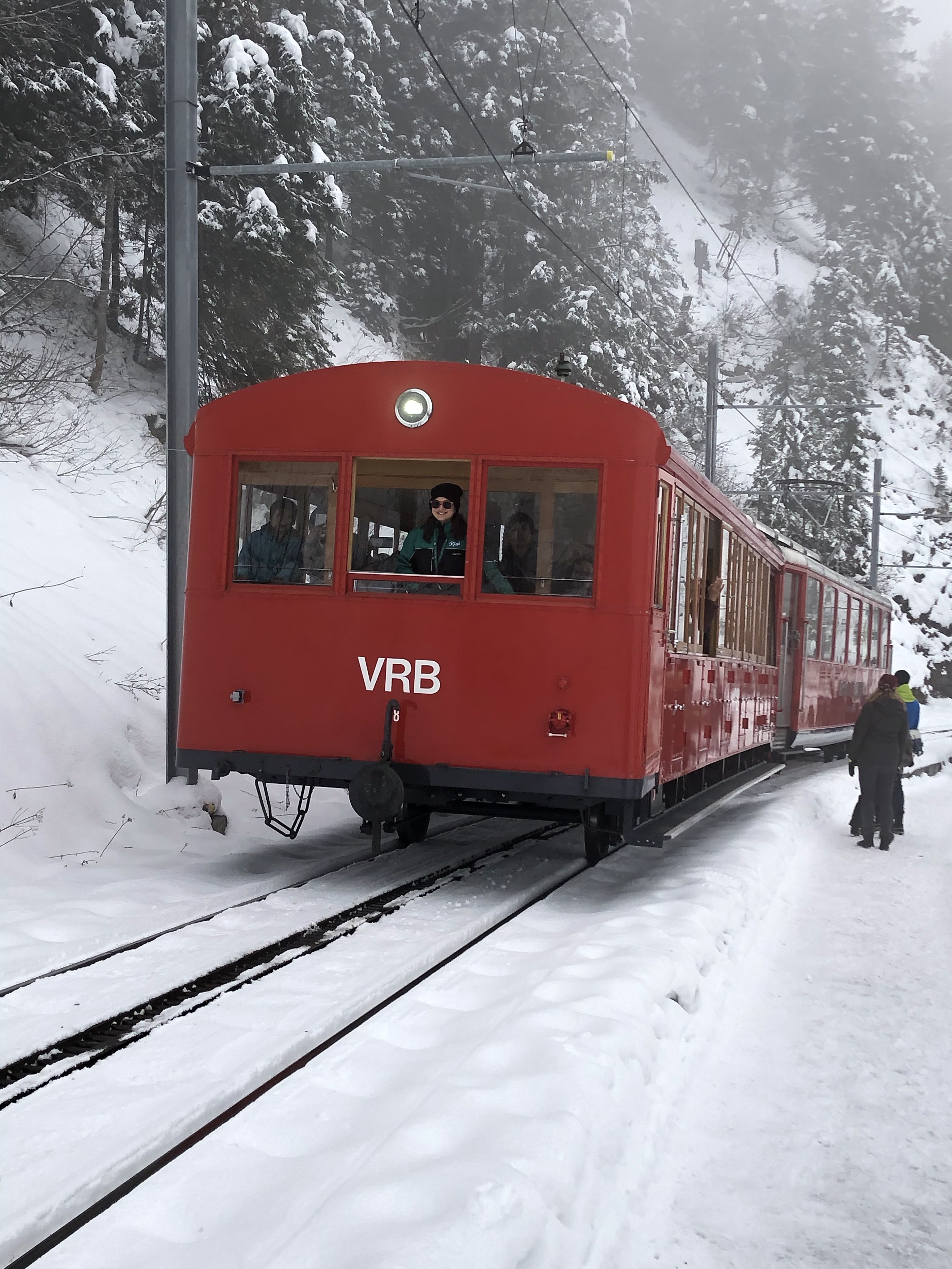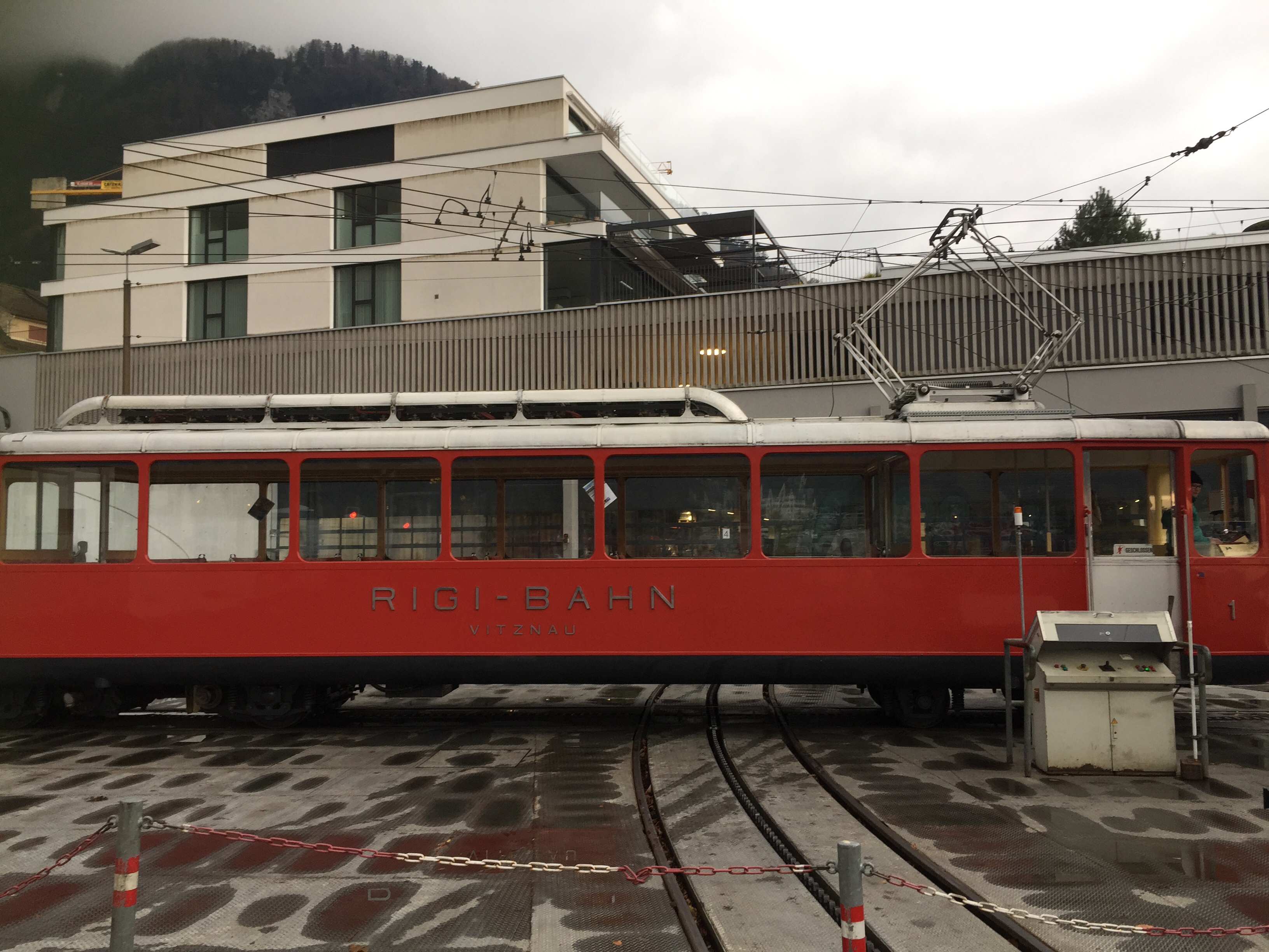 One Mountain Train (Rigi Bahn) straight uphill into the Swiss Alps.