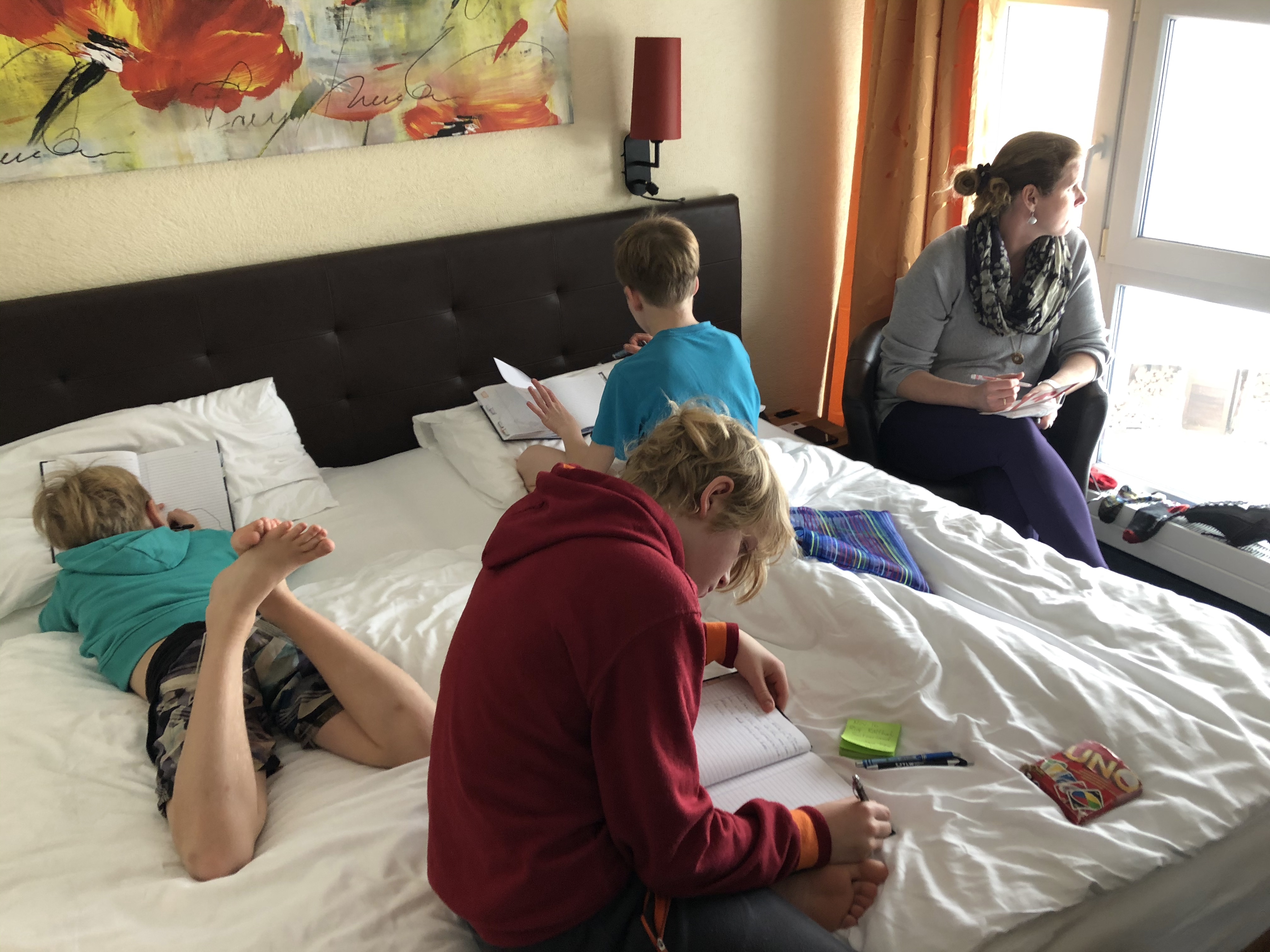 Now an afternoon of journaling, postcard writing, eating Swiss chocolate, shakes and German cookies!