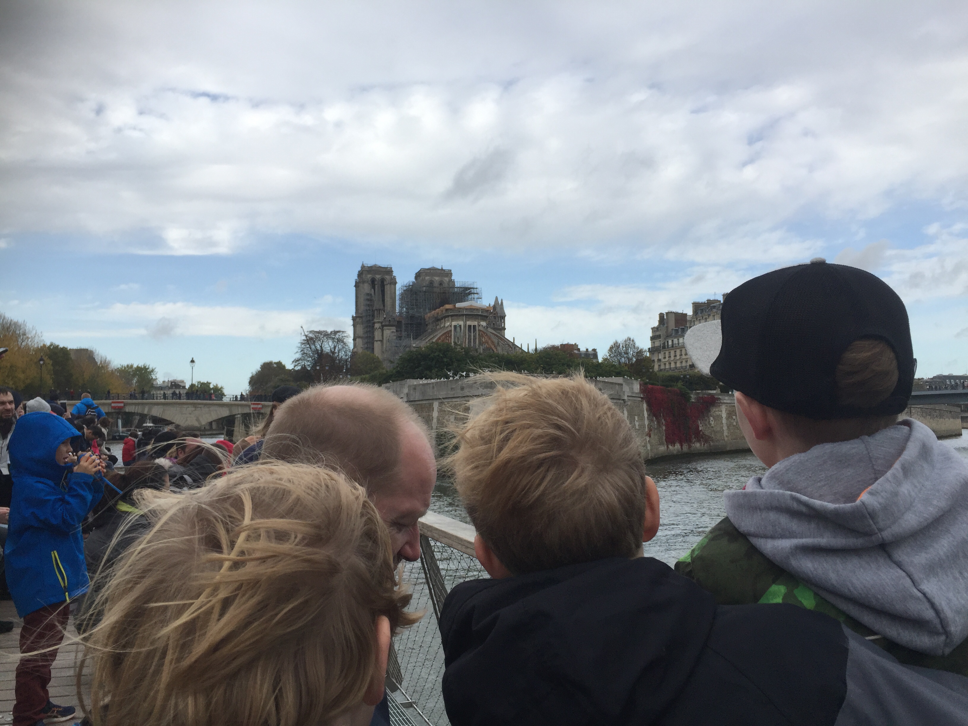 3 bottles or Orangina and hot drinks by the “contained” Notre Dame Cathedral. There were high barriers around the property. We told the boys they will definitely have to go back.