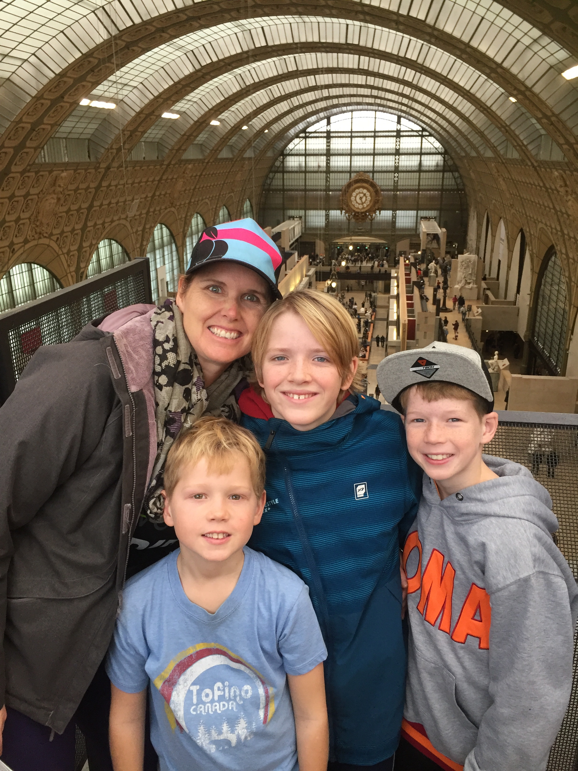 Two hours in the Museum D’Orsay was a hit. We climbed up to an observation deck on the fifth floor of the old train station and we asked the boys to see if they could recognize any of the artwork as we wandered around. We had a fun treasure hunt. But, I will admit that the biggest hit was the free virtual reality machine that gave the boys a two minute tour of the museum from the train station’s development over time.