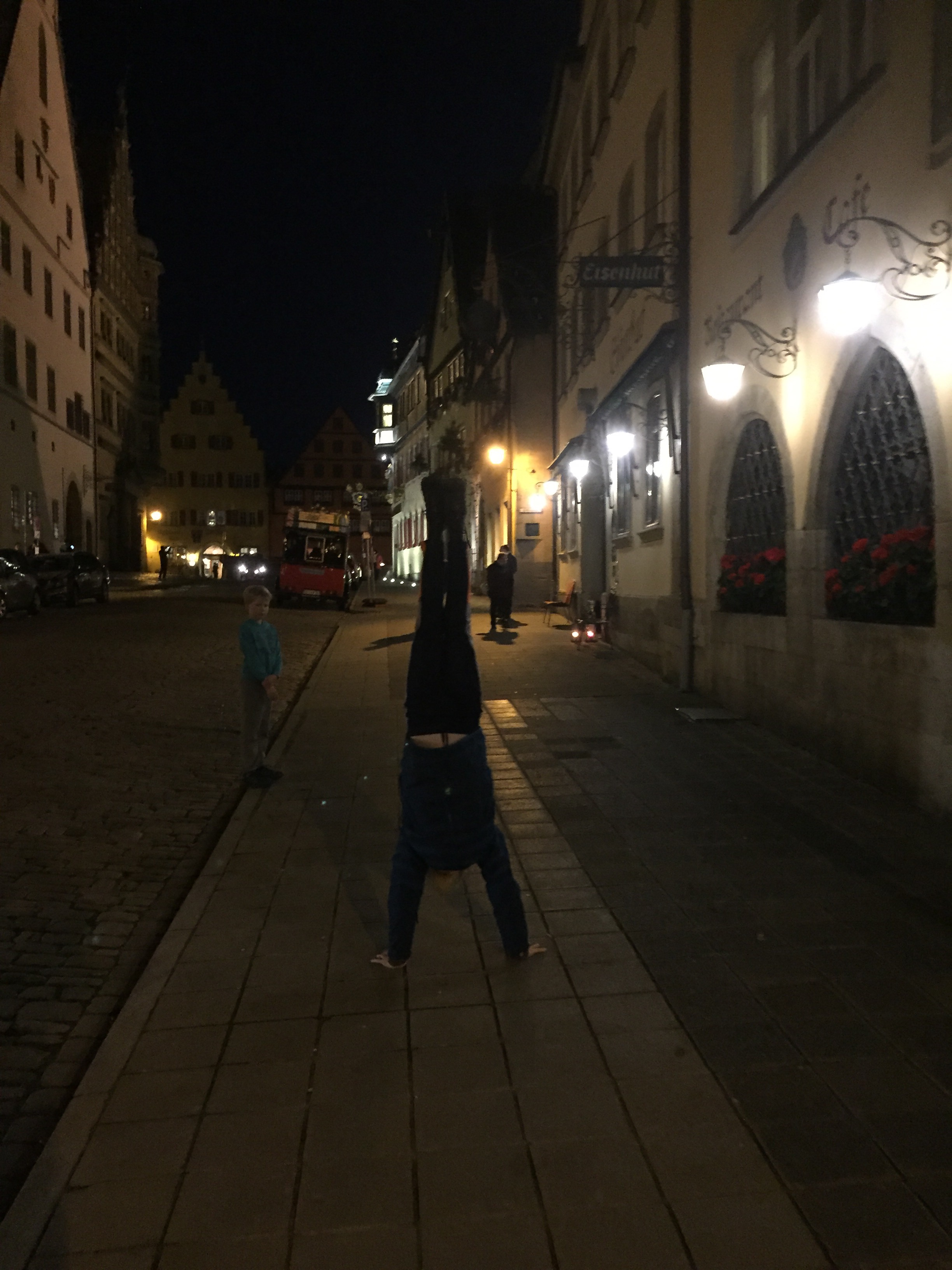 This guy LOVES RC cars. Yes, more handstands. We will have a whole blog with all of these. We even made it to the City Hall at noon to watch the clock go round and round. Hofbrauhaus – our waiter could carry 20 beer at one time!