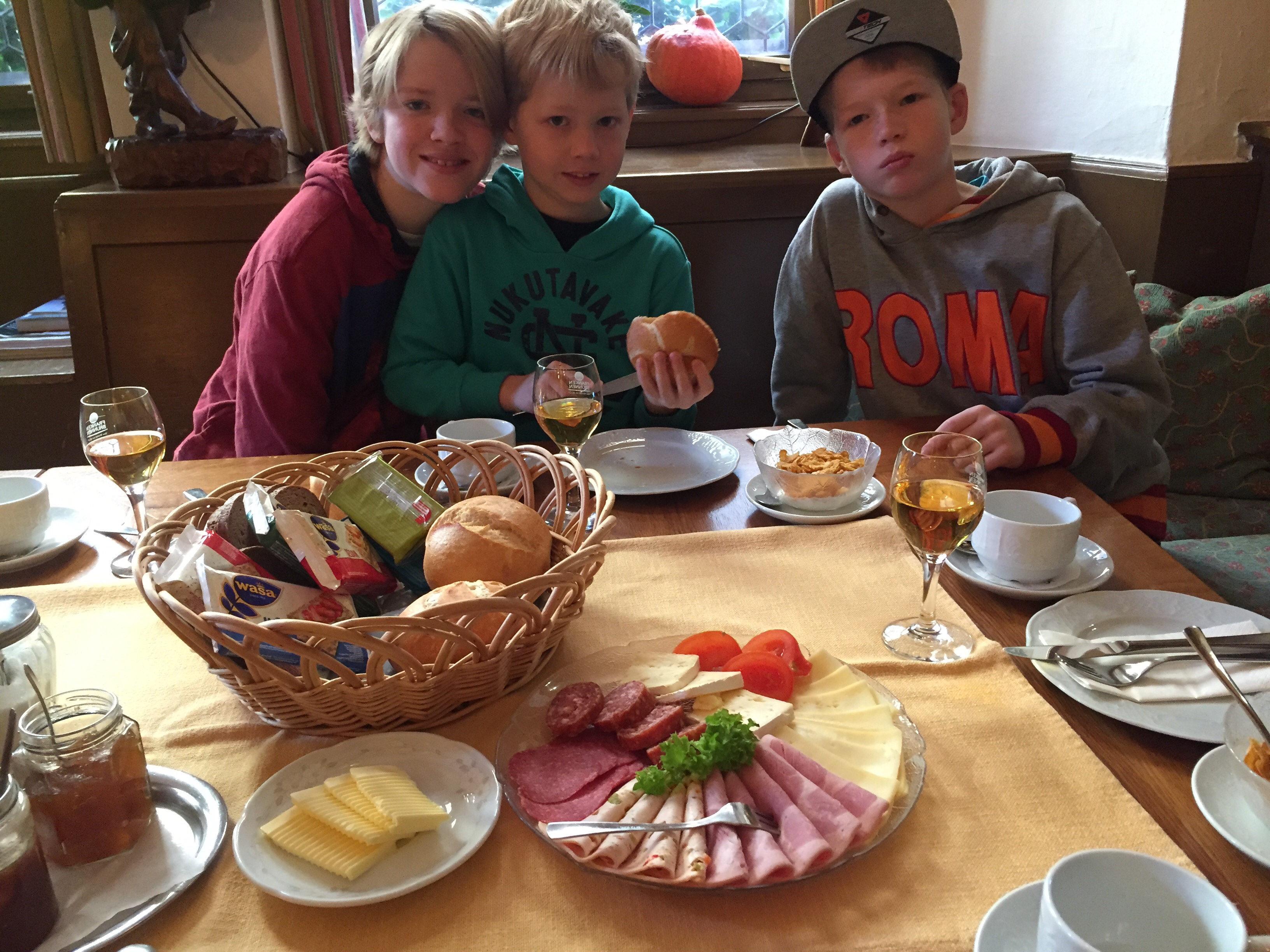 We are pumped to be staying at Monopol hotel across from the Hauptbahnhof with a breakfast buffet, free mini bar, a bathtub and a hotel that has a door that swings out. (It’s the little things that these boys are finding interesting!!)