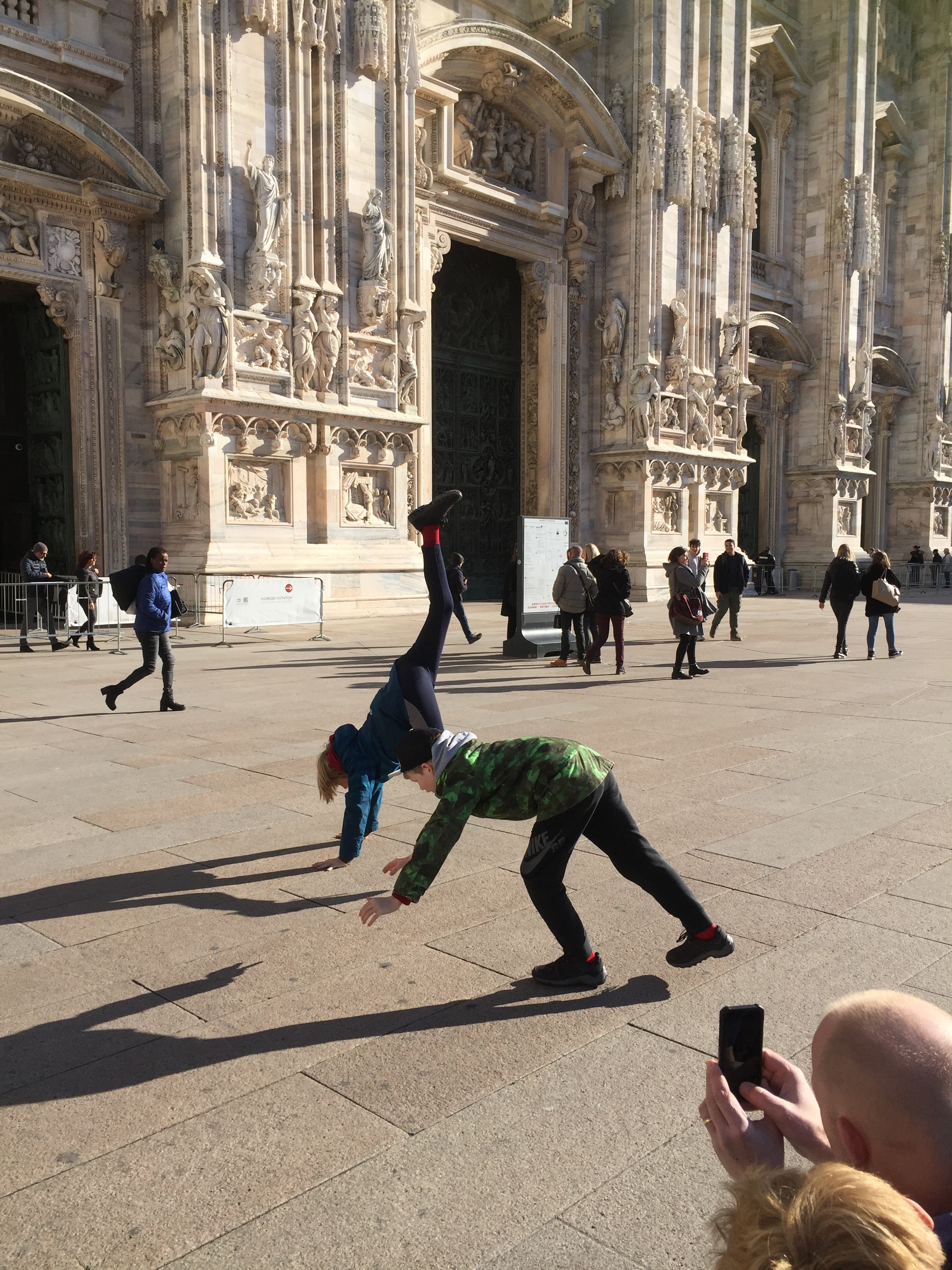 FYI, this is on the Terraces is the DUOMO and they will blow a whistle and yell at you if you do a handstand!