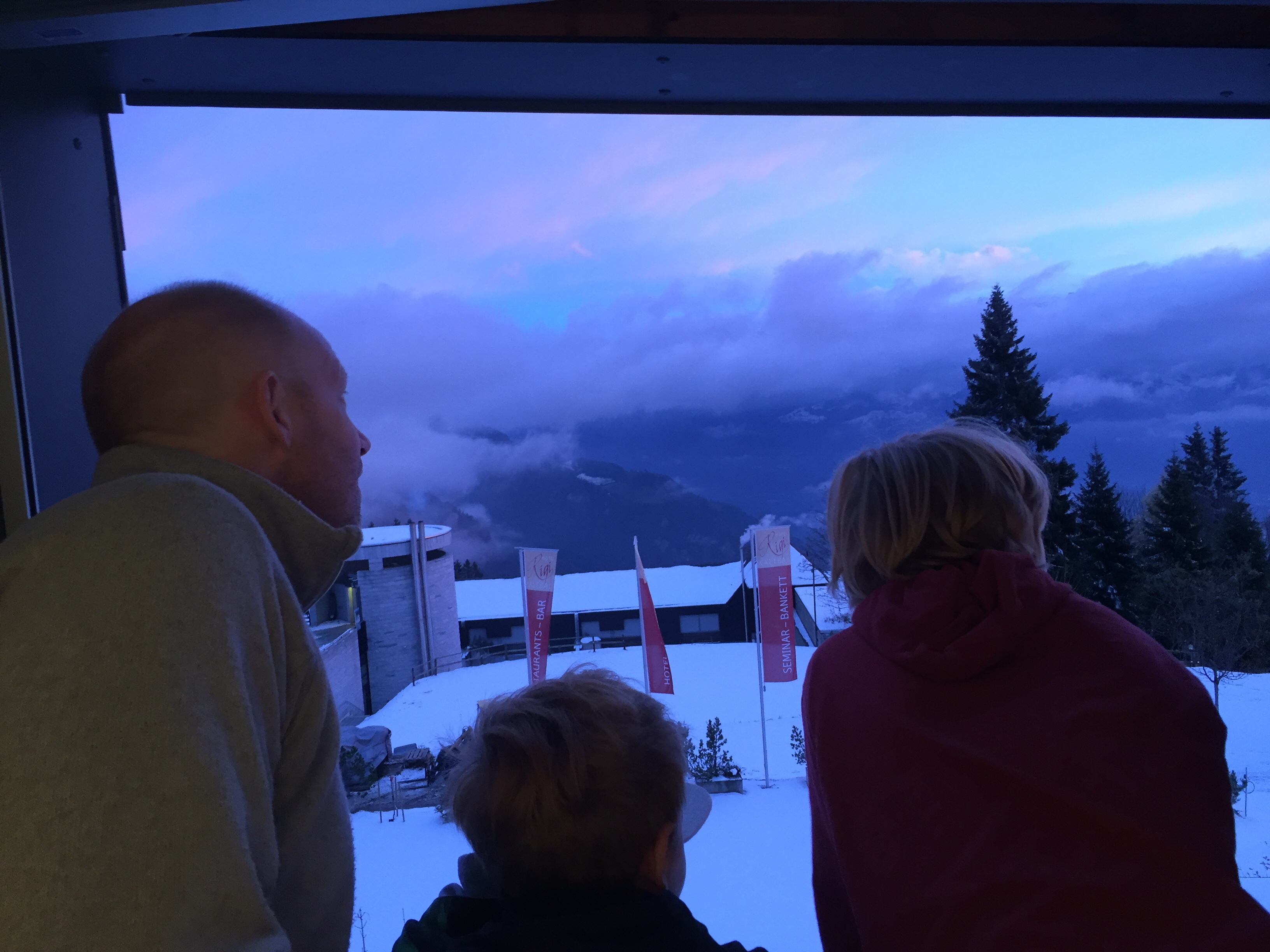 Hot pools at Hotel Kaltbad. A Berliner (donut) with Nutella. This guy is embracing the European life. Morning game time after breakfast! This wall in the restaurant was one of my favourite things to look at. 11:15am Mountain Train back to Vitznau. 1:00-4:00pm Get together in Zurich.