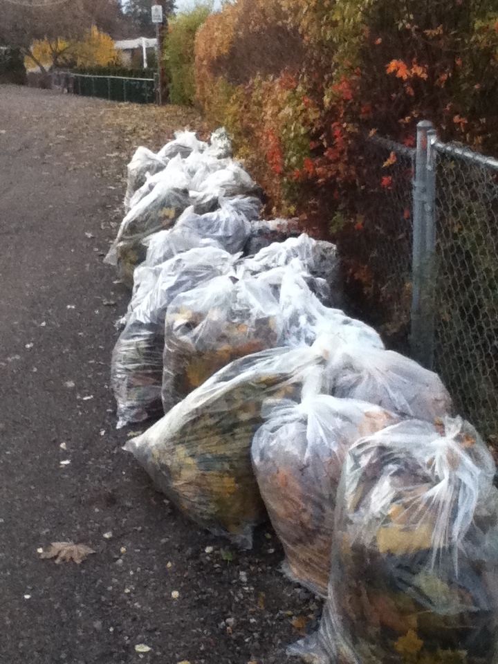I was overwhelmed with my leaves, until two magnificent women came into my life… today my 69 year old mom and our neighbour came over to rake up all the beautiful leaves… and yes they were beautiful again once they were all lined up and waiting for the next snowfall.