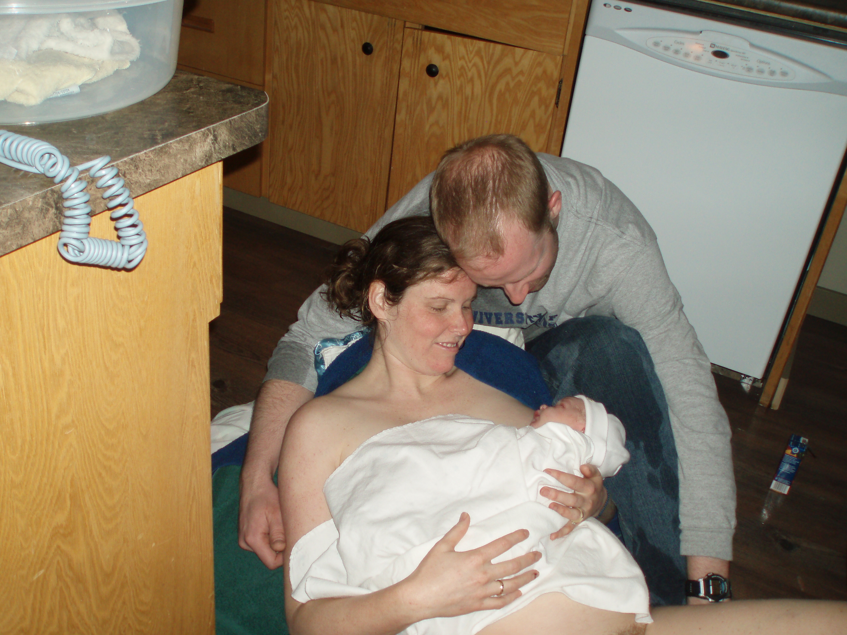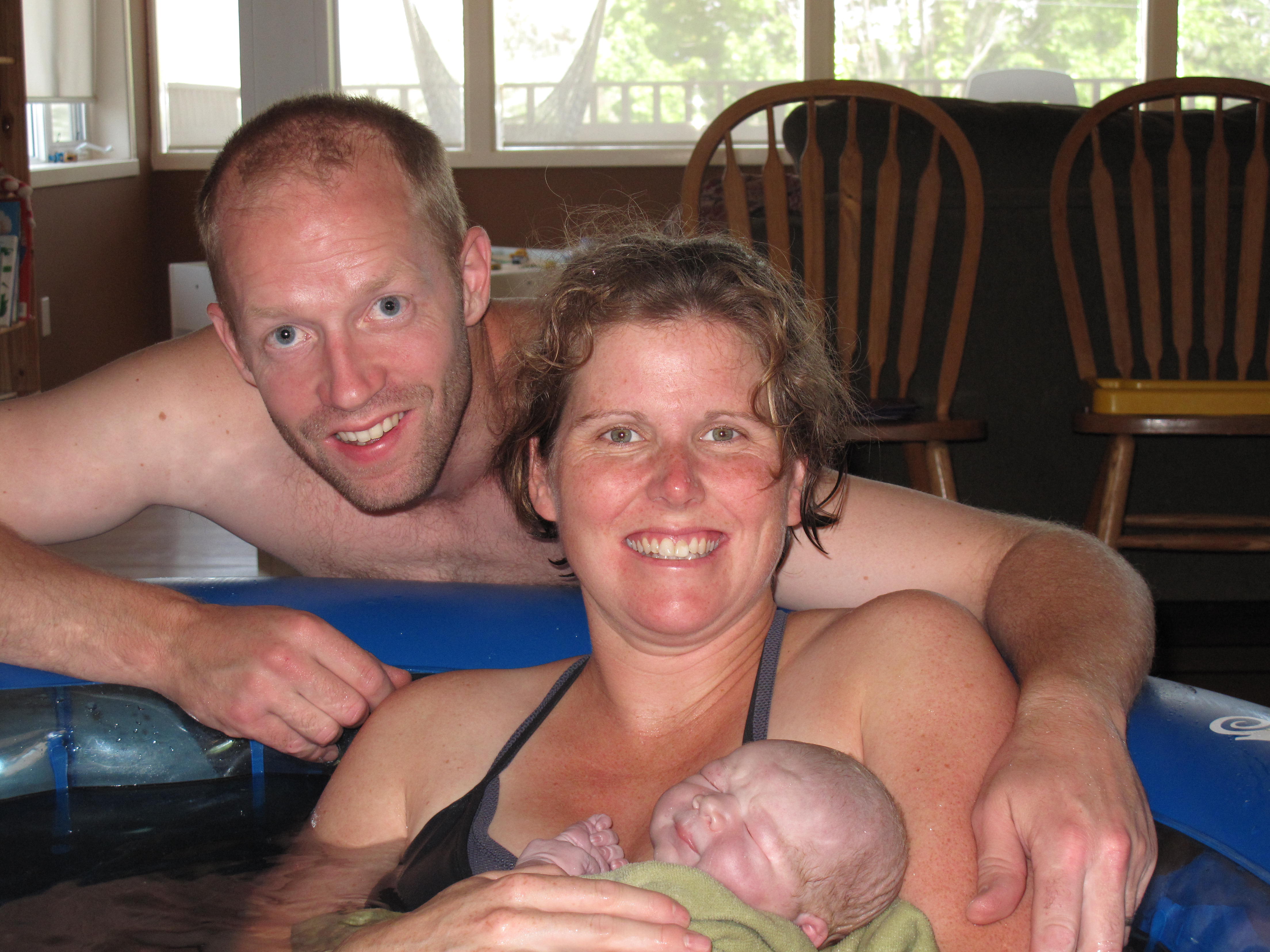 I have been in labour three times and given birth to three beautiful boys. Our first was born at home at night, half in the water and half on the floor beside our dishwasher. Our second was born at home in the mid morning, in the water. Our last was born in the evening, at the hospital on all fours with a crowd awaiting his safe arrival.