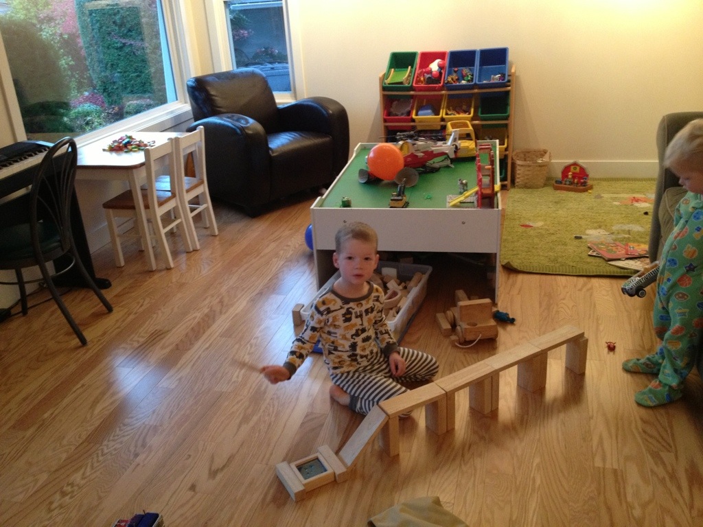 In was a 7:30am pyjama block building party. I love these blocks from Plan Toys.