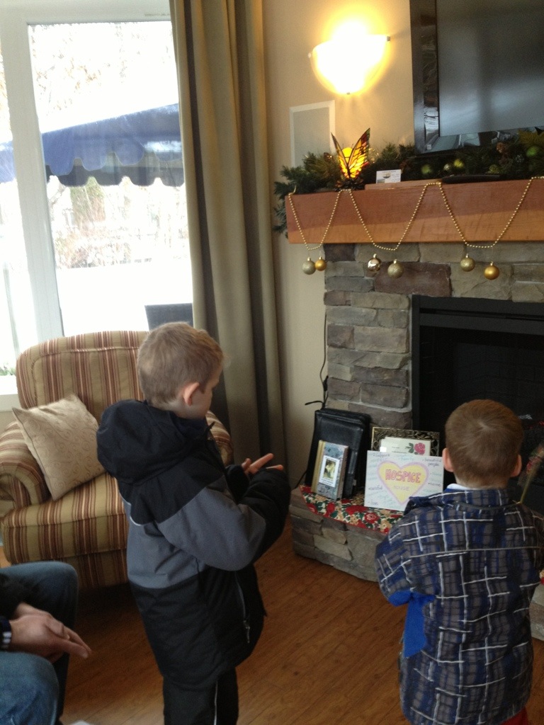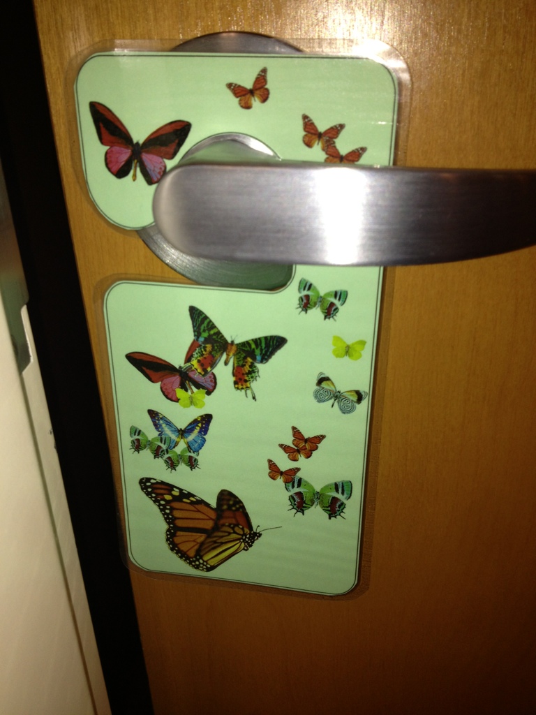 There are beautiful butterflies on the door. (This is hospice’s symbol that the room is not to be disturbed).