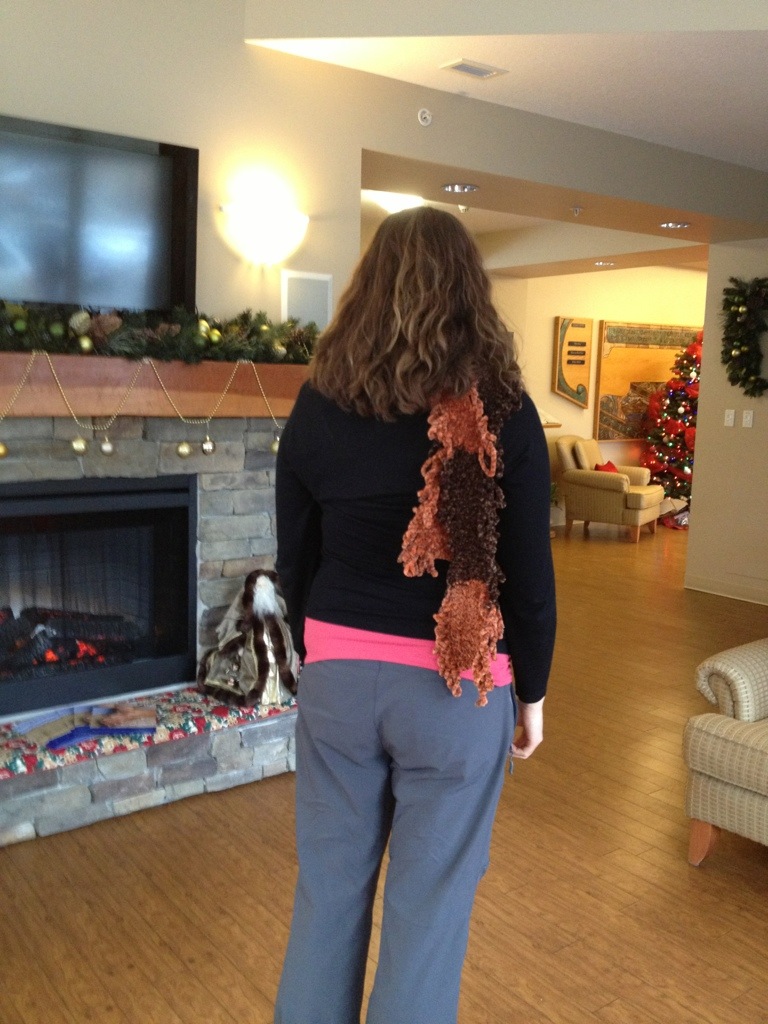 The scarf she knit around my neck.
