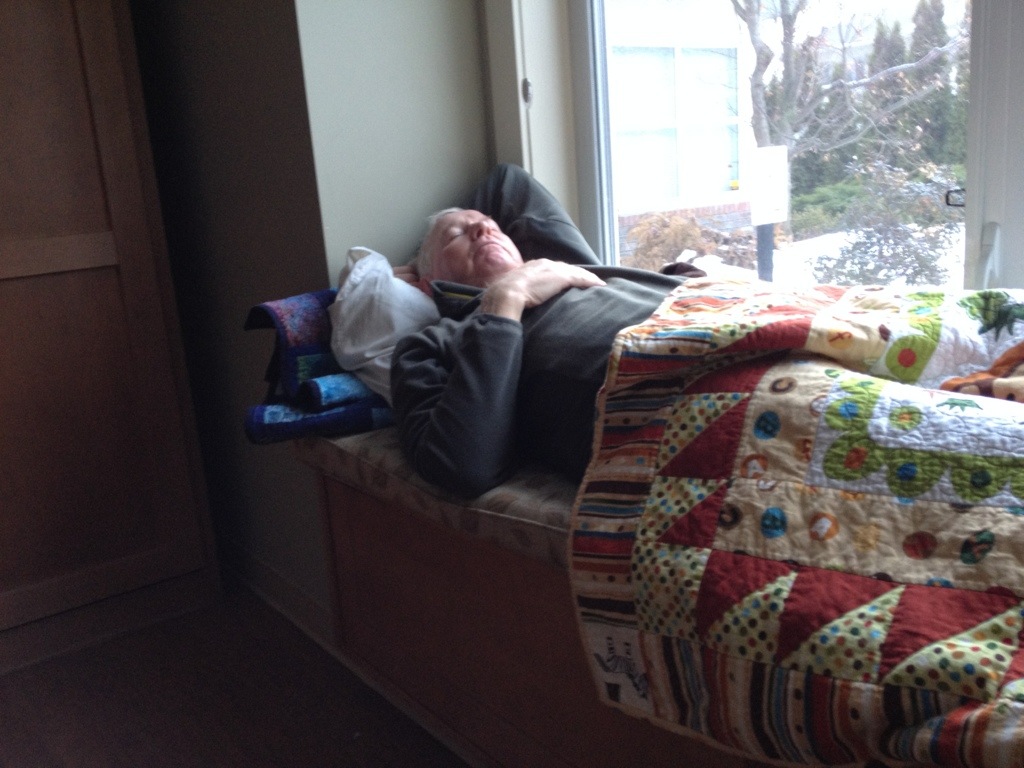 Mom is having a deep rest this morning after her sleepover with M. She had her morning wash, tooth brush and massage. She loves having her back rubbed. She was even able to swing her legs over the edge of the bed and even had a sip of boost. Her first bit of nourishment in a week.