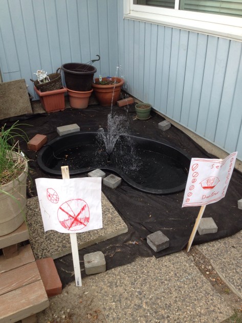 Surprised by a pond that I thought was a broken sewer pipe. My boys lovingly made this pond last weekend as I sold tea.