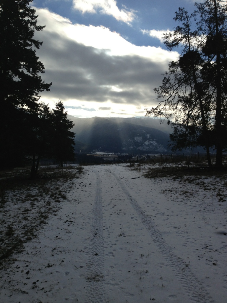 We skied into a sunny meadow, wrote mom’s name in the snow and placed the rose beside a little spruce tree.