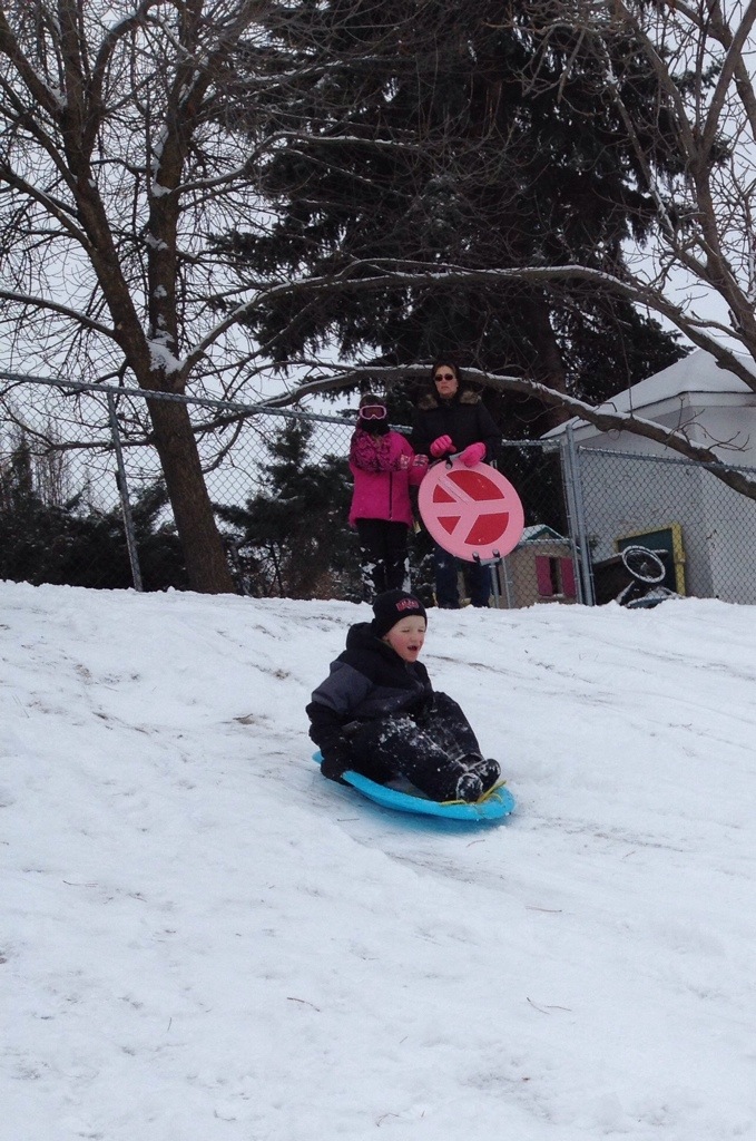 It ended up being a shovelling, sledding, snowman building morning before the school bell rang.