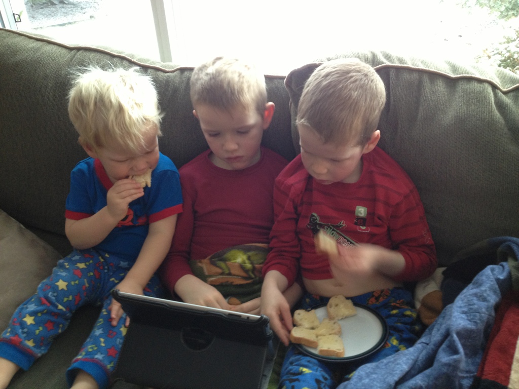The boys made Daddy’s coffee for him this morning. They are becoming quite the jokesters. It’s hilarious to watch. Look at CC and JC’s faces.