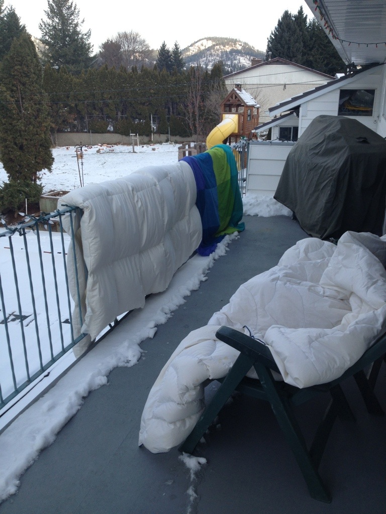 Airing out the bedding.