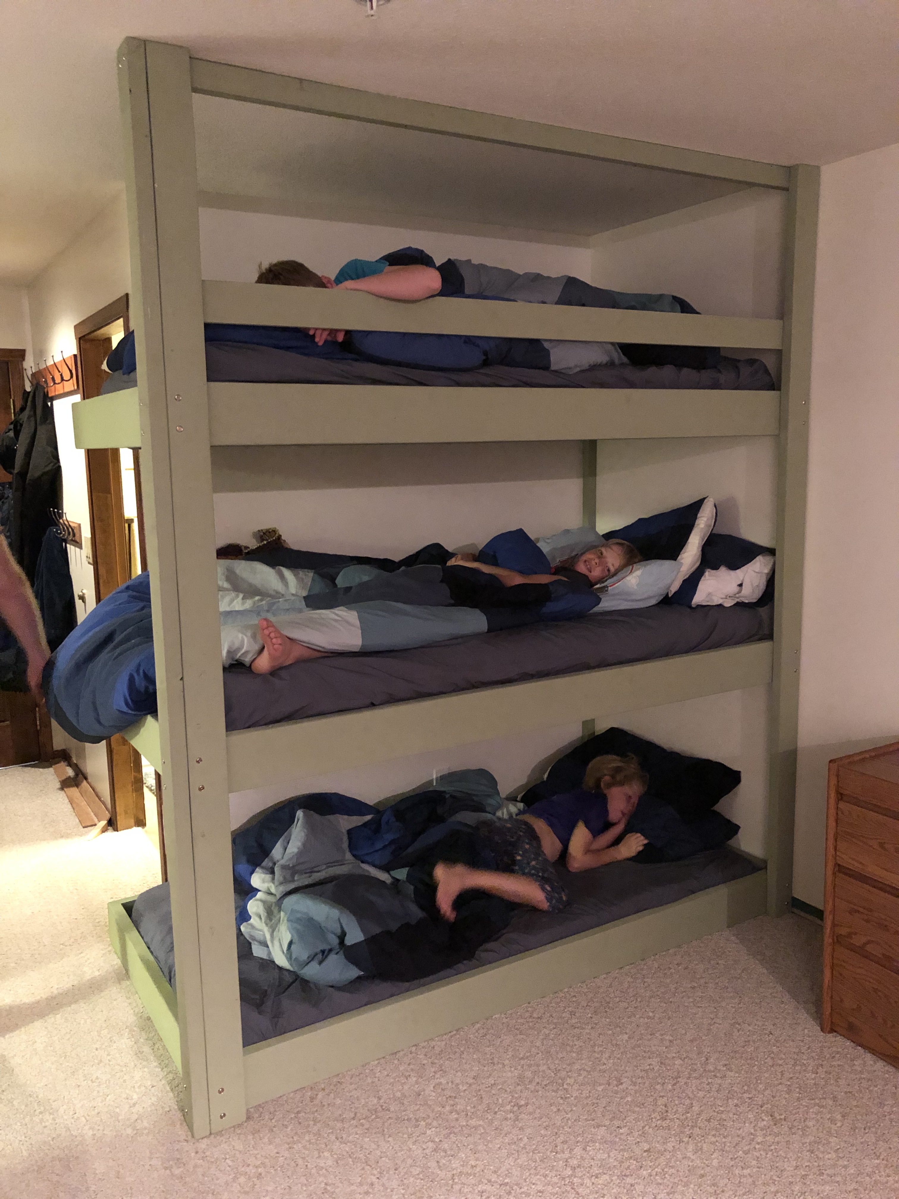 Building a triple bunk bed so that we have more space to play.